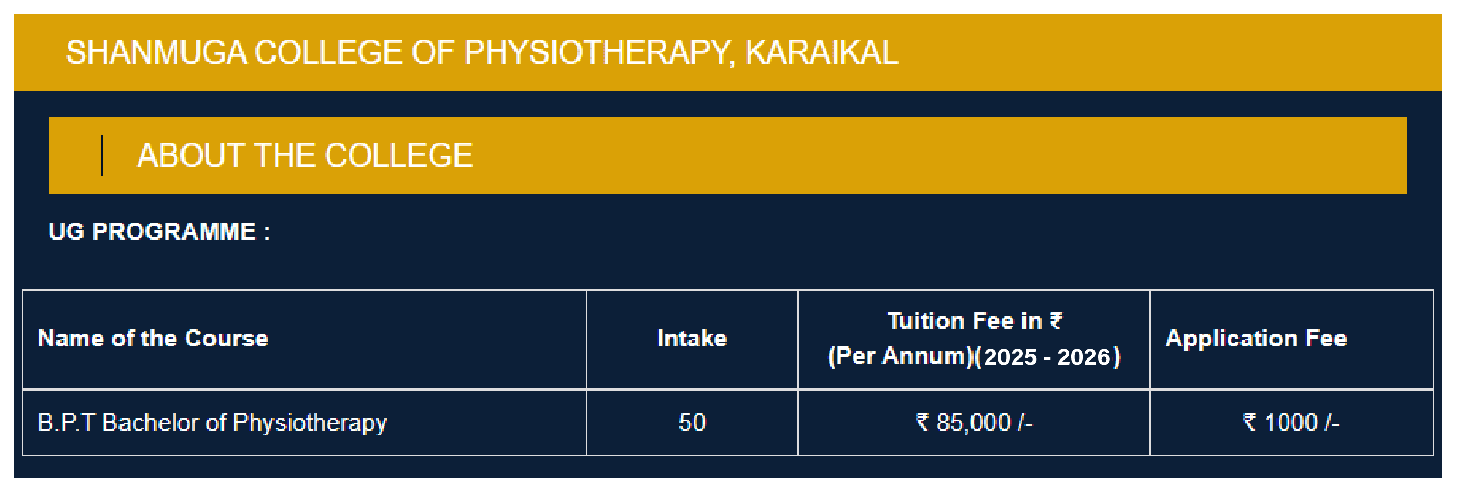 Programs Offered & Fees Structure